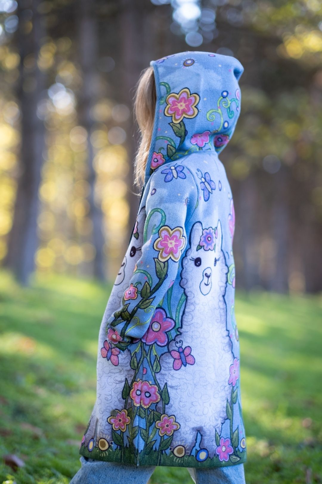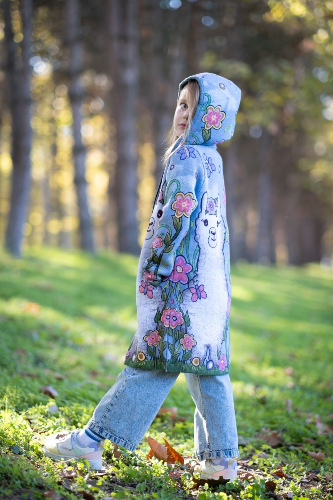 Bring charm and warmth to your little one’s wardrobe with the Alpaca girls’ knitted cardigan. Featuring a heartwarming alpaca amidst a blossoming garden, this long-sleeve cardigan combines soft comfort with playful artistry, reminiscent of an enchanting oil painting.